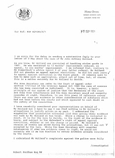 Australian Deputy Premier Robert Fordham wrote to the British Home Secretary on Mr Holland's behalf. John Patten was one of the 3 Home Secretaries to be involved in negotiations over his case. Below is one of the letters in correspondence between them: